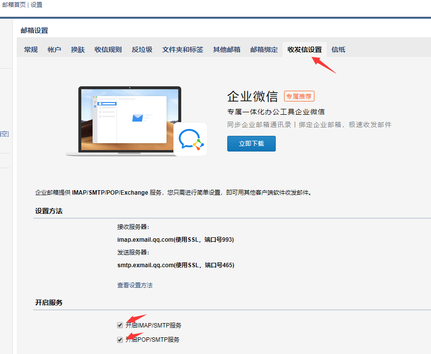 登陆腾讯企业邮箱--->设置--->收发信设置